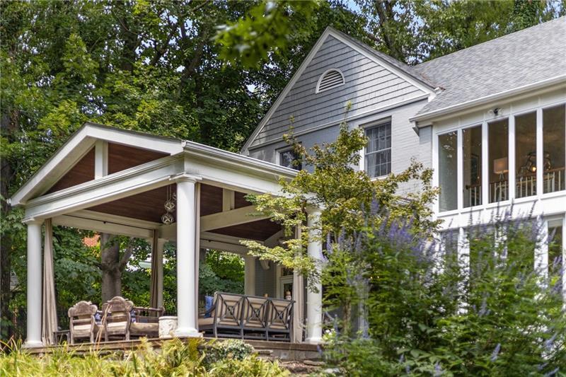 Along one of Sewickley's most beloved Village streets, 107 Woodland Road quietly draws you in. Its classic gray cedar shake exterior, accented by crisp white trim and shutters, feels timeless, but it's what lies beyond the front walk that makes this home so special. Light pours through generous windows and French doors, creating an immediate sense of connection to the outdoors. Everywhere you look, the surrounding gardens and trees seem to frame the home, as though the architecture and landscape were designed together. The location is as good as it gets - in the heart of Sewickley Village, within a short stroll of the Edgeworth Club, schools, shops, and restaurants , yet the setting remains private and peaceful. Adding to that ease of daily life is a Village luxury: an attached two-car garage that connects directly to the main level, where a mudroom, micro-office, and main-level laundry adjoin the kitchen. Inside, the home unfolds with warmth and grace. Offering 5 bedrooms, 3 full bathrooms, and 2 half baths, it is designed to live comfortably. The entry hall opens toward the backyard, a gentle reminder that nature is always part of daily life here. The living room's fireplace and custom built-ins invite gathering, while the family room, with its striking black metal windows, turns treetop views into living artwork. Just beyond, the kitchen has been thoughtfully designed with custom walnut cabinetry, soapstone counters, and high-end appliances, blending beauty with function. A casual sitting area nearby makes it the kind of place where conversations naturally linger. Upstairs, the private spaces reflect the same thoughtful care. The primary suite is a retreat with custom closets and a spa-inspired bath, while additional bedrooms and a versatile office provide flexibility for today's lifestyle. A library-style landing, lined with shelves and filled with light, feels like a quiet sanctuary and captures the creative spirit woven through the house. The finished lower-level recreation room offers additional space for play, fitness, or movie nights, making the home adaptable to many needs. Outdoors, the connection to nature is even stronger. A covered porch with Ipe decking extends the living space outdoors, perfect for morning coffee or evening gatherings. Stone patios, curated gardens, and a rainwater collection design add layers of both beauty and purpose. The backyard is private and inviting, a place to relax, entertain, or simply enjoy the changing seasons. Every improvement has been thoughtful - from spa-like bathrooms and a fully updated kitchen to an energy-efficient HVAC system, enhanced insulation, and landscaping upgrades. The result is a home that honors its heritage while embracing modern living. 107 Woodland Road is more than a place to live; it is Sewickley Village at its best - a home in harmony with its surroundings, where convenience meets creativity, and every detail reflects balance, inspiration, and connection.