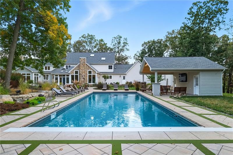 Welcome Home to 5056 BEAR RUN RD nestled on 25+ secluded acres within the heart of Cranberry Township, PA! This remarkable 11,000 Sq Ft Estate provides the perfect blend of modern design + timeless architecture. The beautifully appointed 3-Story Entry welcomes you into the finest experiences of "Home", unlike any other! The delightful A-Frame Great Room boasts a floor-to-ceiling Stone Fireplace, abundant natural light and breathtaking views out back. The recently redesigned Main Level, Chef's Style Kitchen + Dining Area offer luxury finishes and offer the perfect space for entertaining + gatherings! **The First Floor Master Suite retreat feels like a vacation within a home with no detail spared providing both comfort + luxury, including a stone fireplace, massive Walk-In-Closet + Dressing Room w/ Island, Arts + Crafts room + Spa-Inspired remodeled Bath! Adjacent to the Master Suite is a lavish Office + secondary Main Level Guest Suite. **Upstairs offers 5 additional Bedrooms and multiple relaxation spaces + sitting areas! **Recently Finished Walk-Out Gameroom adds 3,000+ Sq Ft of living space with Full Kitchen, state-of-the-art Theatre Room, Gym, Dog Wash, and Entertainment Areas! **The lovely exterior + secluded acreage at 5056 Bear Run Rd is truly unmatched with a long driveway gliding blissfully through the tree-lined landscape + barn area leading to a 5-Car Oversized Attached Garage, perfect for a collector + guests alike. **The compelling property provides a resort-style swimming pool, massive level backyard, mature treed surroundings with lush landscaping, barn, trails, gazebo, pond, and covered front + back patios that invite you out for a morning coffee in the fresh air! Enjoy a perfect combination of seclusion + convenience to the region's finest amenities, shopping, dining, parks, and schools. Truly the best of both worlds. 5056 Bear Run Rd is a One-Of-A-Kind residence, where luxury meets livability and where every corner has been thoughtfully curated, inside & out. Welcome Home!
