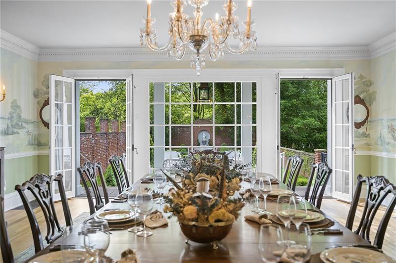Welcome to 526 Scaife Road, a distinguished Sewickley Heights estate spanning nearly thirteen acres, offering timeless architecture, historic character, and refined modern living. The residence is framed by enclosed gardens and established grounds, creating a sense of privacy and seclusion, while Sewickley Village remains only moments away. The home's elegant facade, with its classic design and meticulous craftsmanship, creates a warm invitation. Inside, soaring ceilings, refined millwork, and sun-drenched interiors frame breathtaking views of the grounds. The kitchen is an entertainer's dream and stands as a true masterpiece of design and craftsmanship. Showcasing custom Amish cabinetry, quartzite countertops, and a statement Lacanche range, this space blends elegance with functionality. Top-tier Fisher & Paykel and Tru appliances, including refrigerator drawers, wine storage, an ice maker and both a dishwasher and set of dishwasher drawers make entertaining effortless. A spacious center island with bar seating invites gatherings, while brass accents and Visual Comfort lighting add warmth and sophistication. Adjacent to the main kitchen, the working kitchen is equipped with two Thermador refrigerators, Miele dishwasher, and a Sharp microwave drawer"”perfect for behind-the-scenes meal preparation. The nearby laundry and mudroom feature custom cabinetry, brick flooring, and practical amenities to support everyday living. Designed with entertaining in mind, the home unfolds with elegant reception spaces, including a grand entryway with sweeping staircases and abundant natural light. A formal dining room adorned with a hand-painted mural sets the stage for unforgettable dinner parties, while the wood-paneled library with built-in shelving and the inviting family room offer spaces for intimate gatherings. Each room is framed by soaring ceilings, intricate millwork, and French doors that open to stone terraces, the covered outdoor terrace, and tranquil gardens"”perfect for al fresco dining and sunset cocktails. The primary suite serves as a sanctuary of comfort and style. The newly developed suite features a bespoke dressing room with custom Amish cabinetry, a center island topped with walnut, and thoughtfully designed storage that offers both beauty and functionality. The spa-inspired primary bath is a haven of luxury, with a glass-enclosed marble shower, brass fixtures, and a double vanity with handcrafted cabinetry. The elegant design and premium finishes and lighting create an atmosphere of refined indulgence. Additional bedrooms offer timeless character, restored fireplaces, and exquisite details throughout and are complemented by four fully remodeled bathrooms featuring designer fixtures and finishes. Outdoors, nature unfolds in a tapestry of mature trees, manicured boxwood hedges, and thoughtfully curated landscaping. The captivating brick-walled garden with an antique Greek god fountain offers a secluded haven for outdoor gatherings, while the expansive covered terrace provides sweeping views of sprawling lawns and gardens. A reimagined pond with a custom liner, restored bathhouse, and stone terraces including a 16th century Italian well add to the estate's idyllic charm, creating a setting that's perfect for hosting everything from grand celebrations to intimate gatherings. 526 Scaife Road is more than a home"”it's an entertainer's paradise and an invitation to experience timeless elegance and modern luxury. Discover the legacy of this distinguished historic estate and imagine the possibilities that await you at this prestigious Sewickley Heights address.